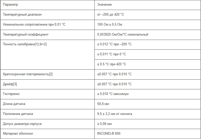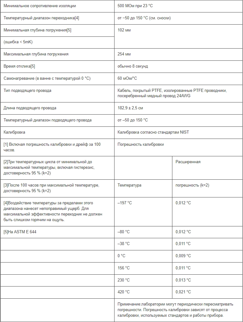 - Точность после калибровки: ± 0,011 °C при 0 °C