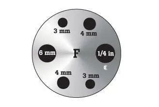 9190-INSF Вставка «F» 9190A, различные метрические отверстия для сравнения с отверстием диаметром 0,25 дюйма
