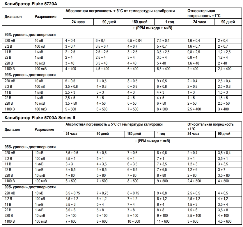 Характеристики многофункциональных калибраторов 5700A и 5720A указаны с возможностью выбора уровня достоверности. Теперь вы можете использовать консервативные 99%-ные характеристики, традиционно публикуемые Fluke, или более агрессивные 95%, рекомендованные во многих международных методиках. Помимо того, что 95%-ный уровень достоверности позволяет снизить небольшой риск ради повышения производительности, он упрощает сравнение результатов измерений. Обе характеристики доступны при нажатии клавиши SPEC для любого выходного сигнала.