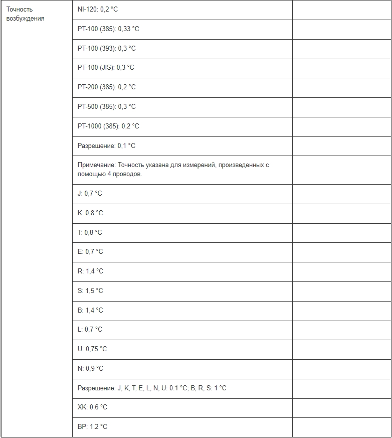 Измеряет напряжение (В) пост. тока, ток (мА), RTD, термопары, и сопротивление (Ом)