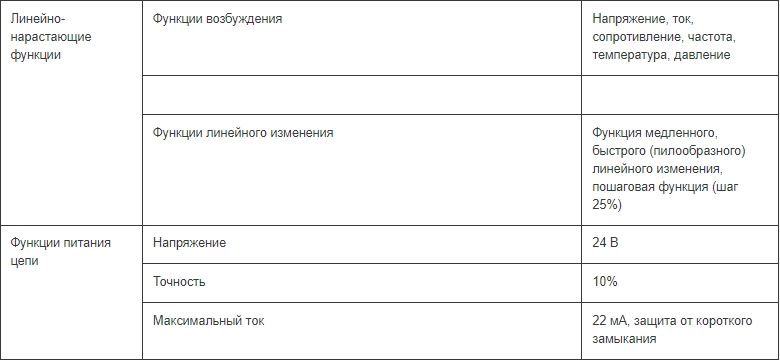 Генерирует или моделирует напряжение (В) пост. тока, ток (мА), RTD, термопары, и сопротивление (Ом)