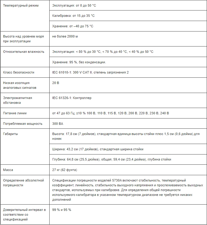 5730A разработан для специалистов, выполняющих профессиональную калибровку, требующую от многофункционального калибратора наиболее точных сигналов постоянного тока / низкой частоты, а также для тех, кому требуется лучший из выпускаемых калибраторов. Метрологи в национальных лабораториях, военных, калибровочных лабораториях третьих сторон, а также корпоративные пользователи с высокой рабочей нагрузкой оценят производительность и надежность 5730A. Все калибраторы 5730A созданы с использованием международных стандартов и производятся на заводе согласно аккредитованной ISO/IEC 17025 калибровке. Технические характеристики соответствуют стандартному уровню достоверности Fluke Calibration 99 % (а также уровню достоверности 95 %) для поддержки быстрого сравнения измерений в соответствии с международными стандартами качества. Технические характеристики являются абсолютными и включают неопределенность использованных стандартов калибровки. Дополнительный анализ не требуется.