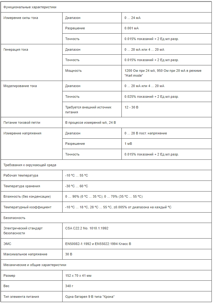 0.015% - это лучшая точность измерений силы тока мА среди калибраторов этой ценовой группы;