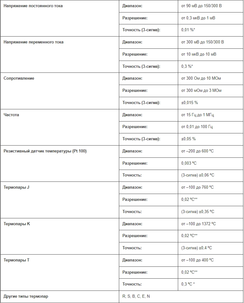 Мы предлагаем разные варианты точности и скорости измерения в зависимости от поставленной задачи. Модуль 2640A обеспечивает точность термопары 0,01 % В пост. тока и 0,3 ºC и разрешение 18 бит, скорость сканирования составляет от 6 до 100 каналов в секунду. Модуль 2645A может сканировать со скоростью от 48 до 1000 каналов/сек. с разрешением 16 бит и точностью термопары 0,01 % В пост. тока и 0,6 ºC.