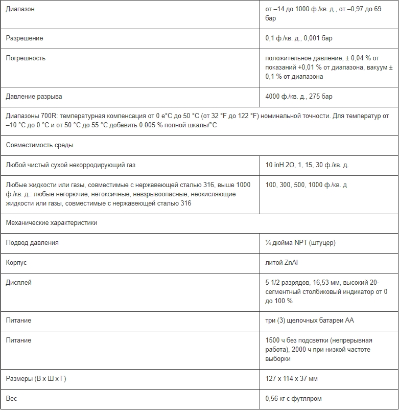 Рабочий диапазон –0.97 до 69 бар.